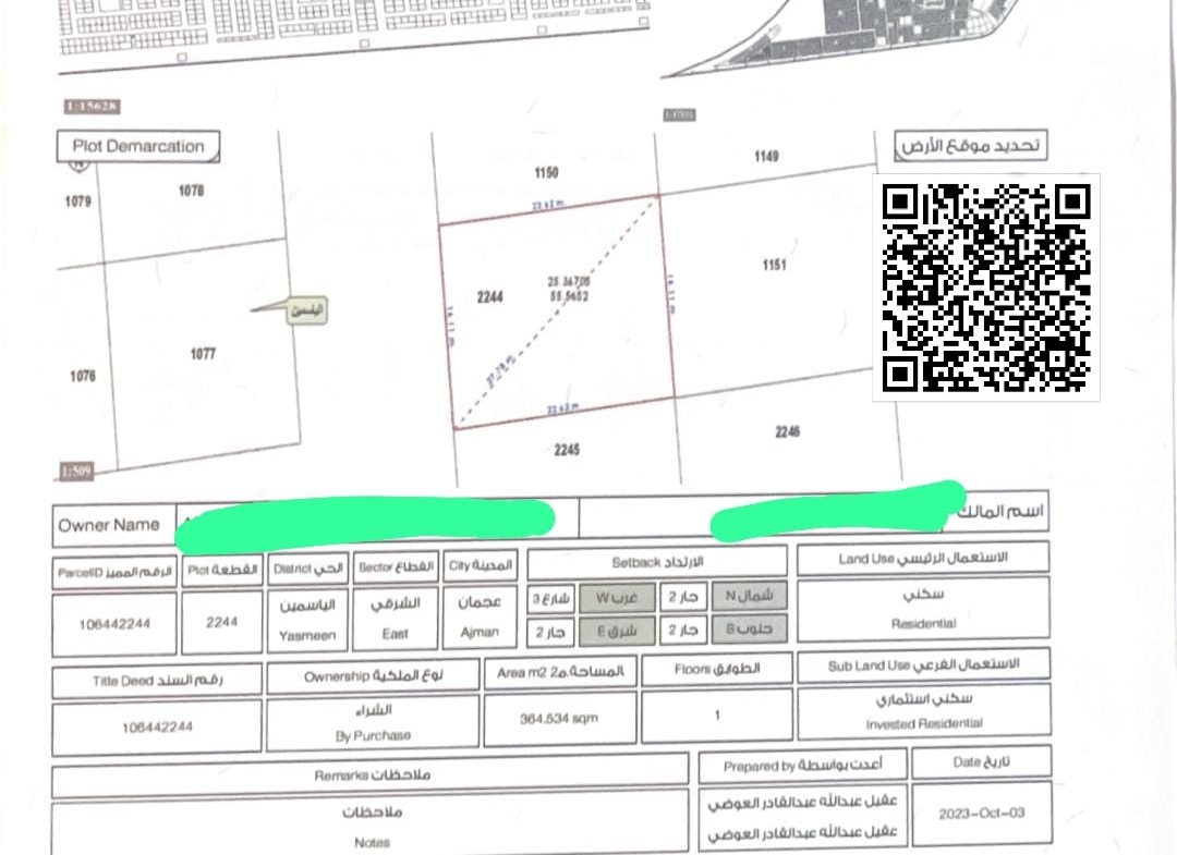 ارض للبيع بمنطقة الياسمين شامل رسوم التسجيل